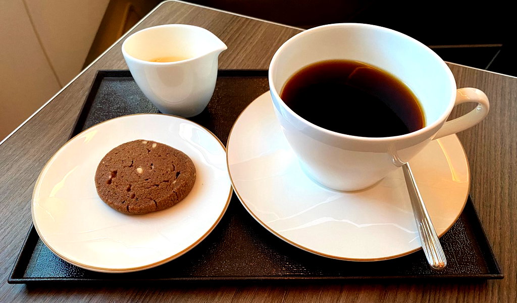 بعد العشاء طلبت قهوة وتم تقديمها على طبق جميل مع ملف تعريف الارتباط وقليل من الحليب.